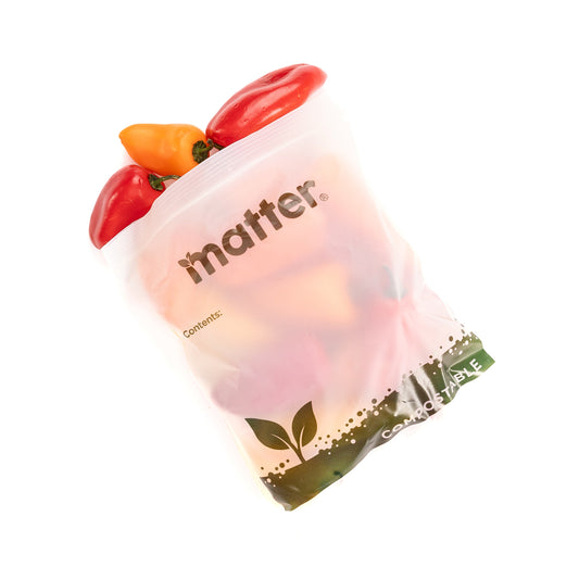 You don’t have to compromise strength and performance when you make the green choice. Matter’s plant-based biopolymer products are a high-quality sustainable option. Lock in the freshness of your favorite foods with Matter bags and containers.