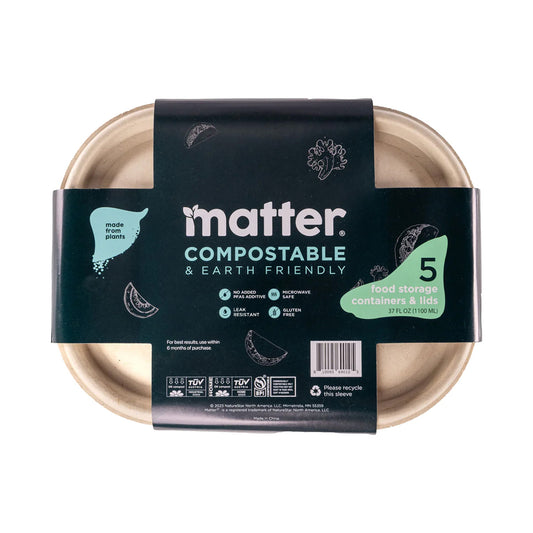 Matter Compostable Food Storage 37oz Containers with Lids - 5 Count