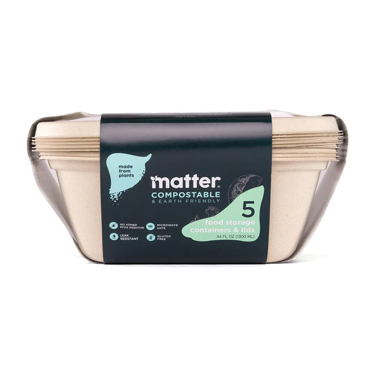 Matter Compostable Food Storage 44oz Containers with Lids - 5 Count