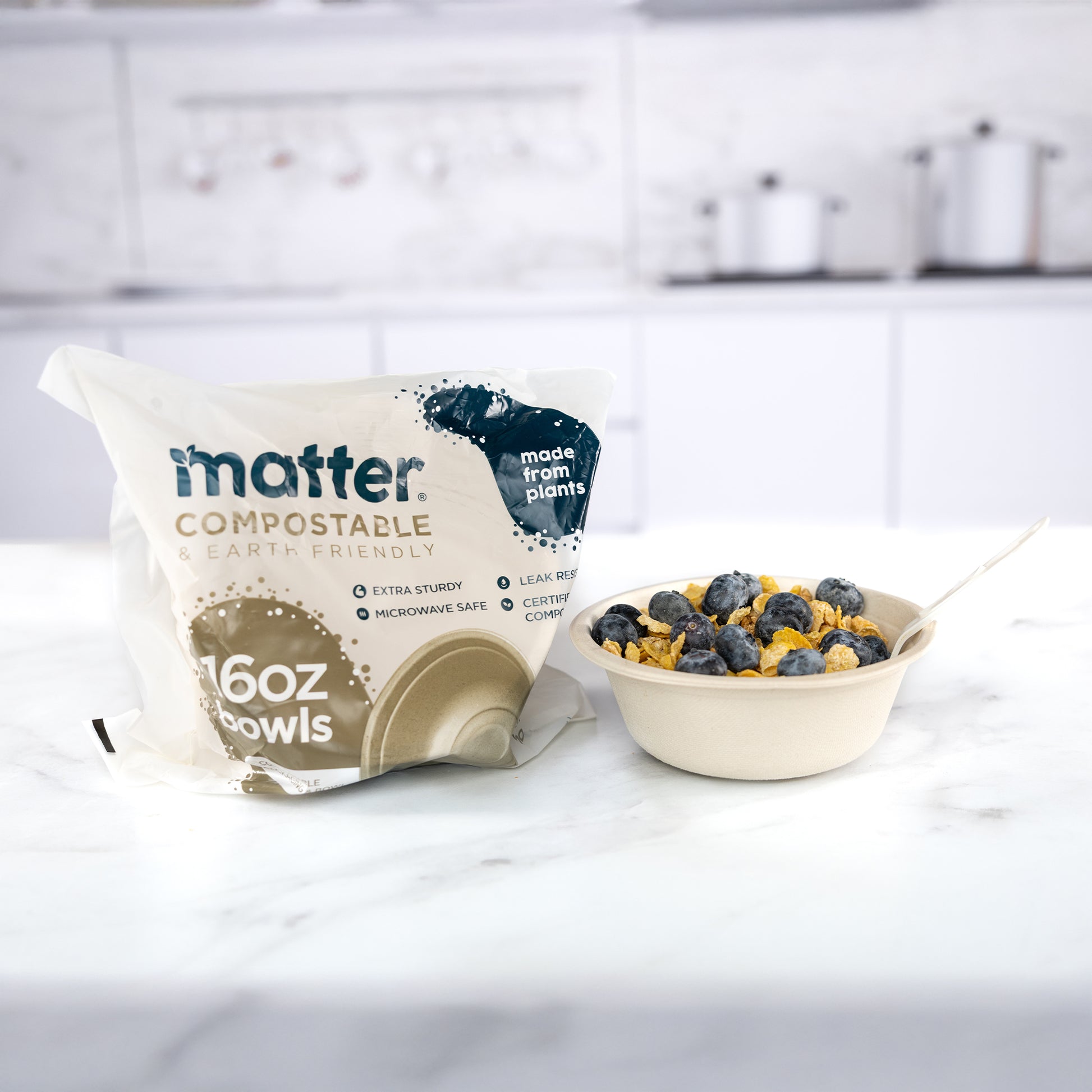 Matter plant-based fiber bowls are extra sturdy for big portions and will fully compost in less than 12 months.
