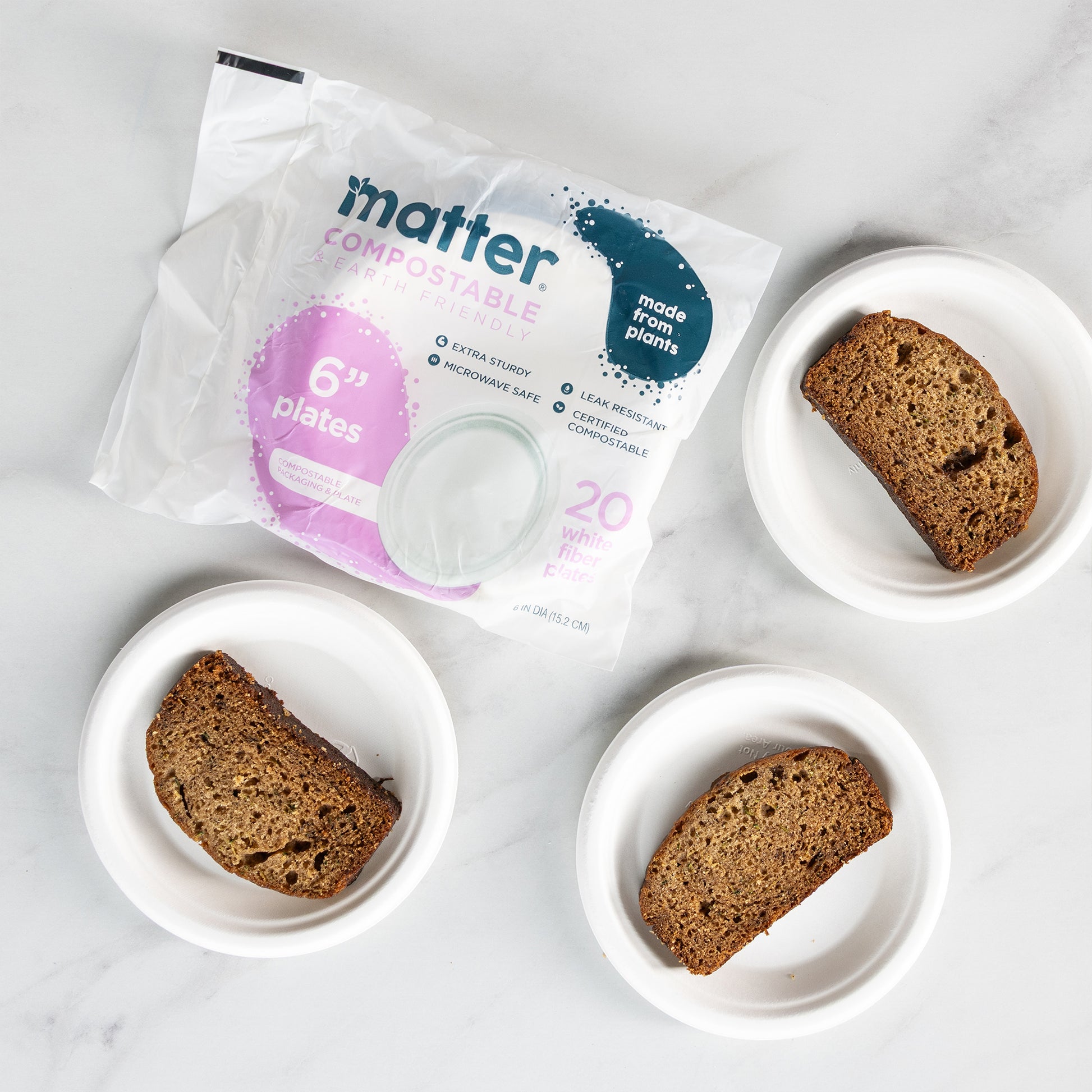 Matter plant-based fiber plates are sturdy and strong for big servings and look great – even with fancy meals! Our plates have the strength you expect but will fully compost in less than 12 months.