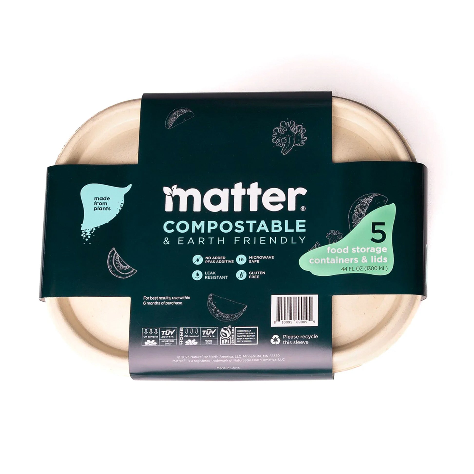 Matter Compostable Food Storage 44oz Containers with Lids - 5 Count