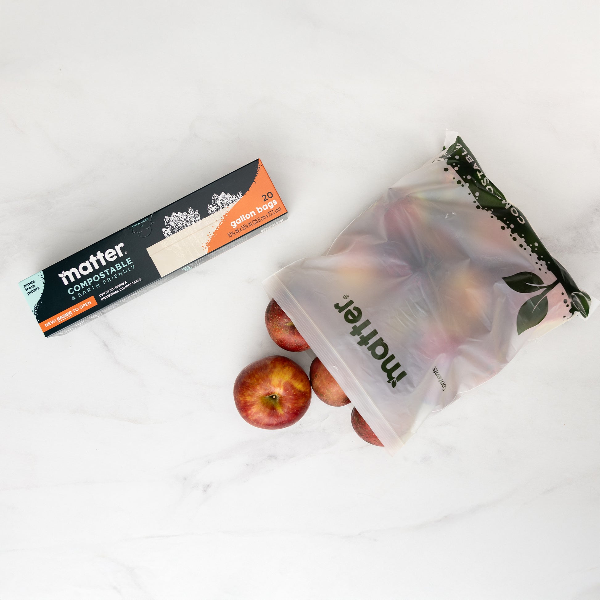 - Matter brand Gallon Storage Bags are home and industrial compostable (Facilities may not exist in your area)