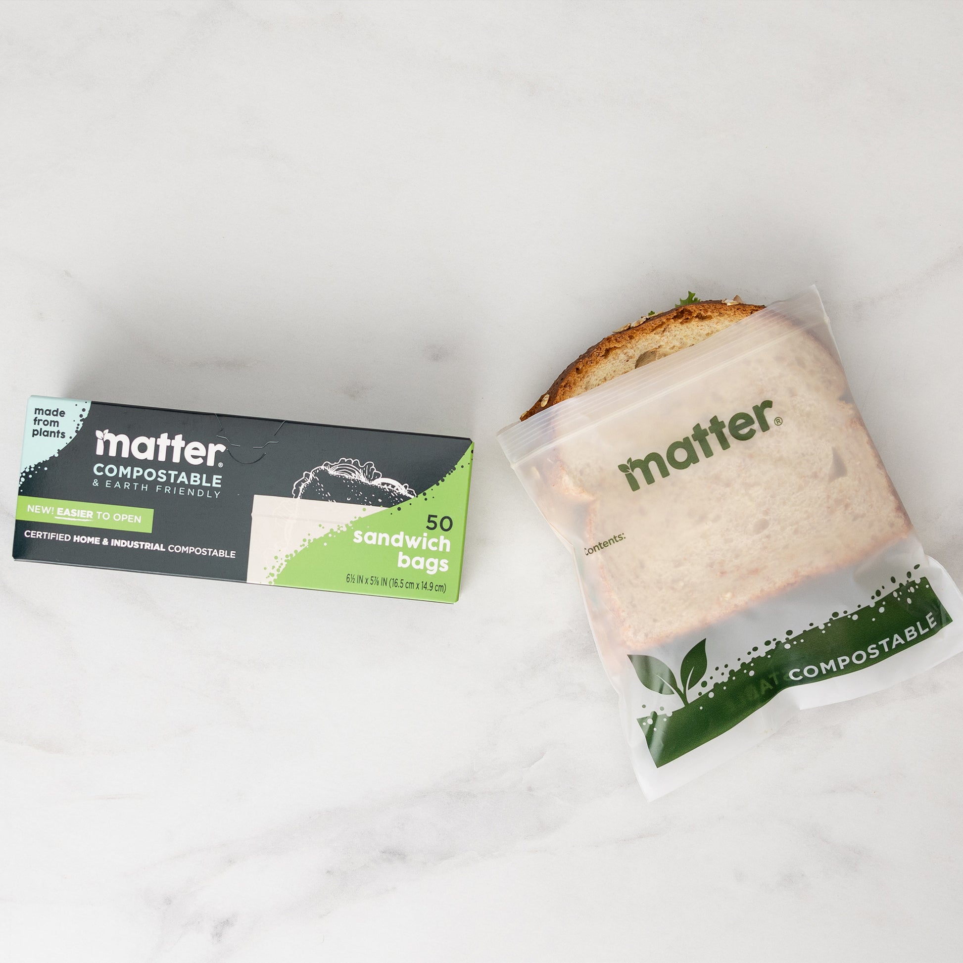 - Matter brand Sandwich Bags are home and industrial compostable (Facilities may not exist in your area)